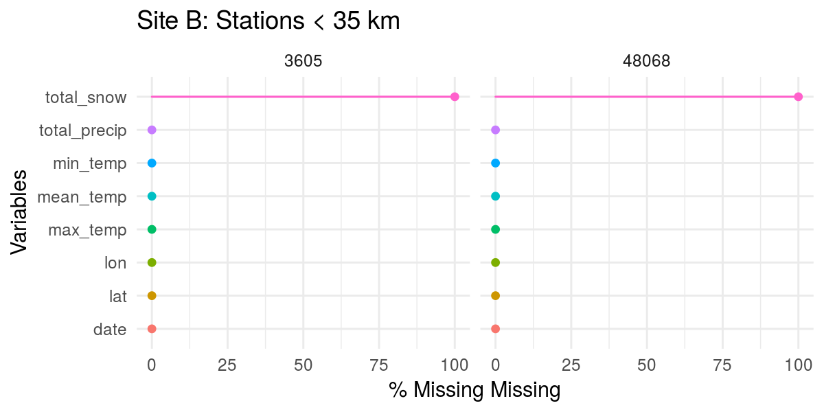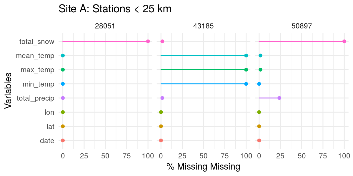 We have a selection of stations for each site that are all about the same distance away. Before we choose any we should make sure they have the data we’re interested in.